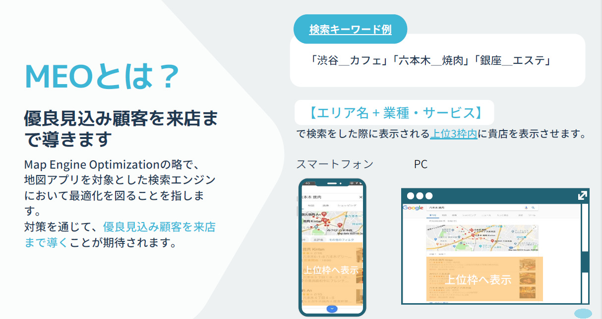 「最近、お店の集客が伸び悩んでいる…」そんなお悩みをお持ちの方は、MEO(ローカルSEO)を強化してみませんか?